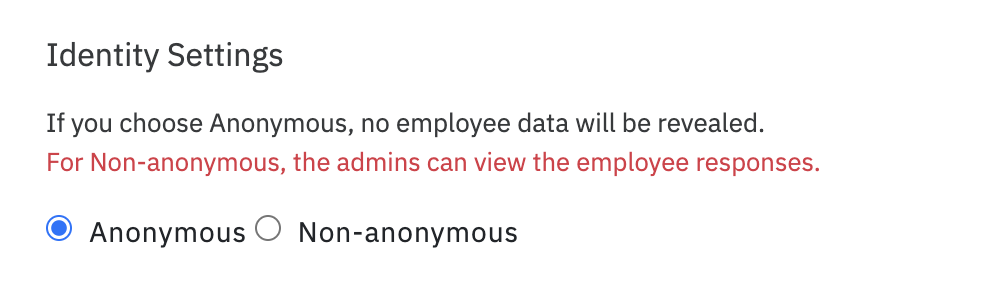 Users can choose to set the survey as completely anonymous where the employees can answer the questions anonymously and their employee details will not be disclosed.