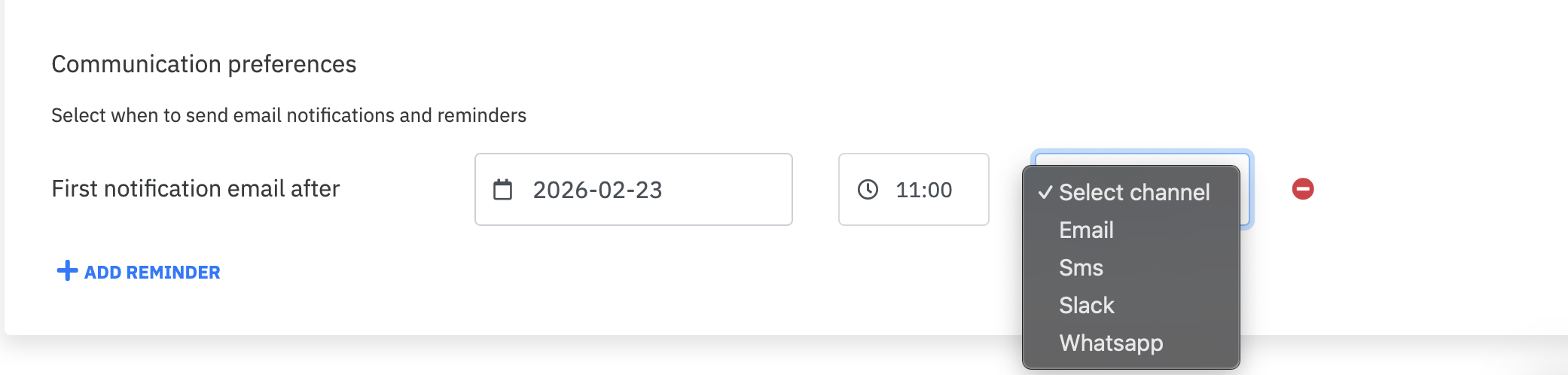 Step 3: Select the channel through which you want to reminder to go out.