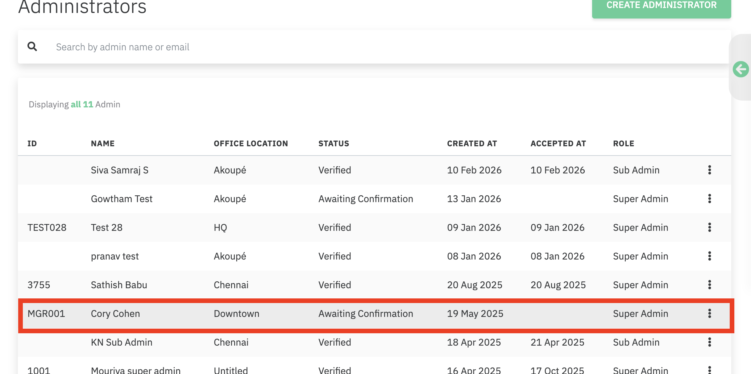 Go to Managers section from the side-menu and select the manager profile you wish to revoke access for.
